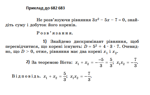 При розв'язанні рівнянь номерів 635, 639 при розв' язанні кожного квадратного рівняння має бути табличка, що складається з: