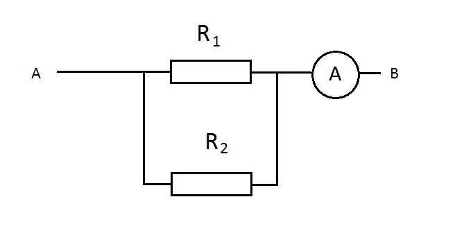 2) Який загальний опір ділянки кола АВ, якщо R1=12 Ом R2=8 Ом? Визначте силу струму і напругу на кожному резисторі, якщо амперметр показує силу струму 240мА ?